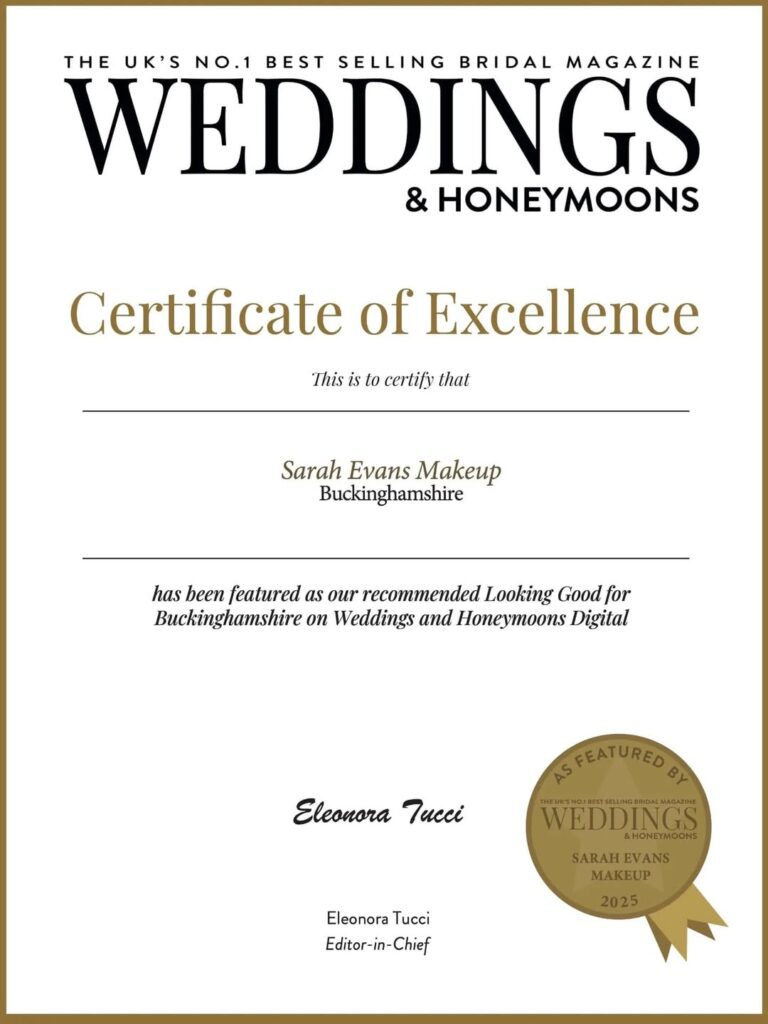 Hi, I’m Sarah – a bridal makeup artist with over 20 years of experience, based in Milton Keynes and available to travel.